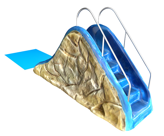 The 3D Rock Slide is a naturalistic slide structure designed to resemble an authentic rock formation. Children climb the integrated stairs with safety railings and slide down through the rock’s center, landing softly on the included foam pad below. This adventure-themed feature encourages active play and engaging tactile experiences while providing a safe, exciting sliding experience.