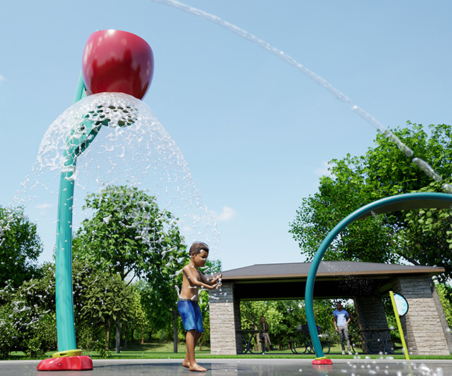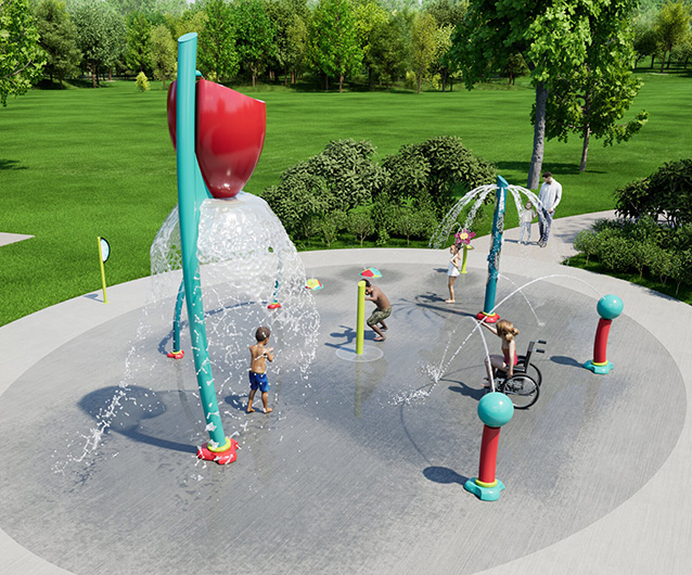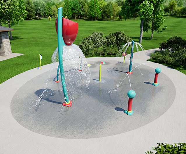 Make a splash with this package that delivers an abundance of water-filled excitement for everyone. Visitors enjoy the suspense of the filling and spraying bucket, or a refreshing mist cooldown under the archway structure. There are manipulative water features where kids press buttons to control the spray and spinnable spheres they can aim at friends. Even more features add to the fun in this all-in-one park. Choose Aquatix colors based on material. A HydroLogix® User Sign is included with every package.
