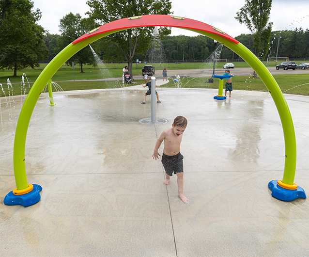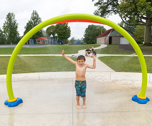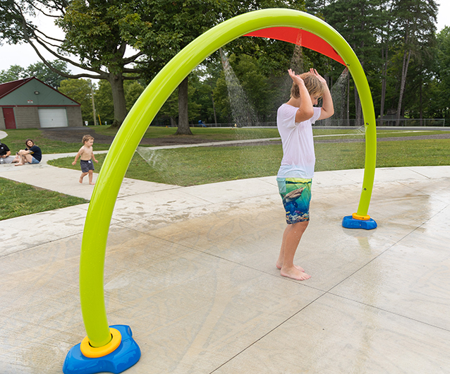 Kids will enjoy this angled, arching structure that offers a refreshing cooldown from several misting water sprays. Water comes from above and from the sides as kids scamper through this striking, modern design. Decorative acrylic accent panels offer a distinctive look while casting a cool reflection on the ground.The RippleRun with Acrylic Medium Rung promotes misting and manipulative tactile experiences.