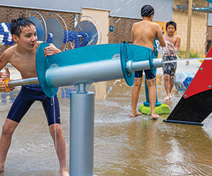 Interactive splash play features bring experimentation and curiosity to the spray park experience. These sensational structures encourage kids to experience water in novel ways through game-based events and innovative cause-and-effect activities. Aim + Sprays, Twisters, Wigglers and Cause + Effects challenge children's minds and bodies in unique ways. What's best, these activities are inclusive of all abilities. Learning is easy when interaction and experimentation is fun!