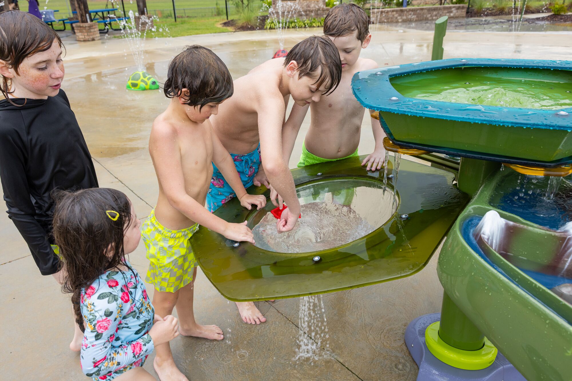At the same time, interactive water play is a main event at the AquaGather Station, which invites children to test out, play with and explore the qualities of water as it gushes and flows through three multisensory activity tables.