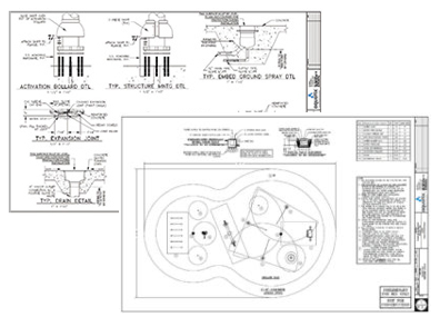 After the concept and budget are approved, you’ll need technical drawings for permits, bids and construction. Our design document package includes complete writing specifications, splash pad construction details, mechanical and electrical system design, and all product and material installation detailing. Professional engineering stamp is provided as required.